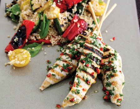 Couscous salat med persillepesto - Henriette Storgaard from henriettestorgaard.dk Grøn salat, en cremet dressing, sprøde croutoner, parmesan og kylling. Kyllingspyd passer perfekt på tapasbordet eller som middag med en grønn salat, kokt ris og rømmedressing. Her får du oppskrift på en prior kyllingfilet; Vend couscous inn i salaten. Kyllingen blir også bedre om den får ligge en stund i marinaden. Jeg liker og tilsette alt på tallerken, vende alt godt sammen slik at dressingen blander seg med masse små biter av fetaost. 300 g couscous gryn, kokt. Når vi skal spise den til aftensmad, så er vi ekstra glade for, at der er couscous i.